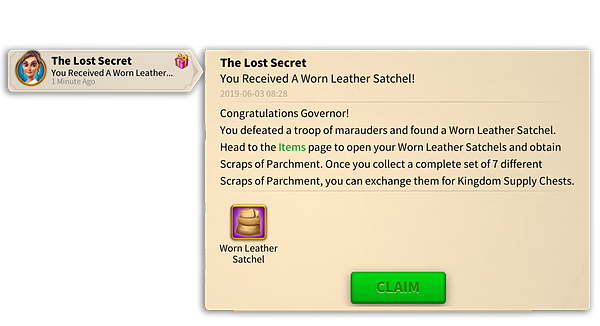 이 이벤트의 어려운 점은 무엇보다도 운에 의존해야 한다는 것이다. 선수들은 마로더가 죽을 때마다 가죽 사첼을 받는 것이 보장되지 않는다. 그것은 모두 운에 근거한다. 그리고 나서 당신이 마모된 가죽 사첼을 받았을 때, 당신은 그것을 작동시켜 그것이 7가지 유산 조각 중 랜덤으로 얻을 것이다. 확률이 다르기 때문에 플레이어들은 다른 양피지보다 몇 가지 더 많은 양피지를 갖게 될 가능성이 크다. 왕국의 등장은 당신에게 일부 남은 모든 양피지에 대한 작은 보너스를 제공한다. 그러나 7개의 Scraps of Parchment 세트를 모두 모을 때 받은 포상금에 비해 보너스가 떨어진다.