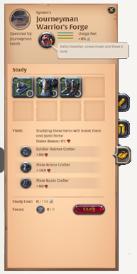 스터디 특성은 공예로 얻는 명예의 양을 증가시키는 또 다른 방법이다. 장비를 크래프트했으면 크래프트 스테이션에서 북 아이콘을 클릭하여 스터디 메뉴에 액세스하십시오. 여기서 새로 만든 항목을 드래그 앤 드롭할 수 있습니다(완전한 내구성이어야 함). Study(스터디) 버튼을 클릭하면 아이템이 망가질 수 있지만, 현재 진행 중인 데스티니 보드(Destiny Board) 미션에서 더 많은 명성을 얻게 될 것이다!