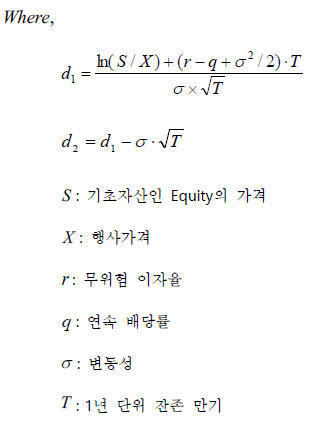 물론 아주 간단한 거래지만, 이러한 옵션의 가치를 수치적으로 계산하려고 노력한 결과 여러가지 가정하에 블랙-숄즈 공식에 의해 옵션의 가격을 나타낼 수 있다. 사실 이 공식을 도출하는 과정만 해도 양이 많지만, 이 포스팅은 비전공자들을 위해 작성하므로 자세히 다루지는 않겠다.